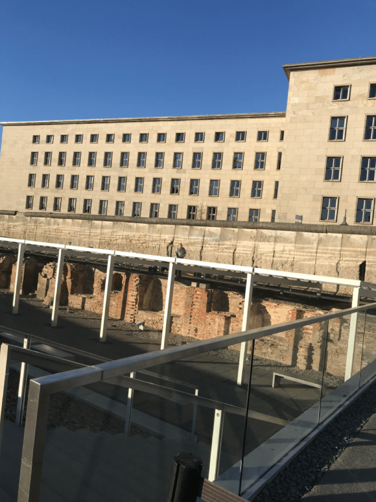 Some of the facets of the Third Reich that the Berliners chose to remember or commemorate were many of the buildings and memorials. When we walked through Nazi Berlin, I found it interesting how the Berliners chose to keep up some of the original Nazi buildings, and for some of the buildings they chose to tear it down and replace it with something totally new. They kept the original buildings of The German Resistance Memorial, The Air Force Ministry, and the Gestapo Headquarters. The only building that we saw that had been removed was Hitler’s Chancellery. The Chancellery is now modern and even has restaurants at the bottom of it. They did not want to keep the original building, because they did not want Neo Nazi’s coming there. Hitler intentionally made his buildings and their hallways long, so that people would feel small. In 1943 he started to build the Hitler Bunker, that he later committed suicide in. Today The Air Force Ministry became the council of users planning ministry. They kept the Gestapo Headquarters as it was, and added the Topography of Terror museum next to it. With The German Resistance Memorial, they also put inside the museum those who resisted Hitler’s terror. Hitler had many assassination attempts.